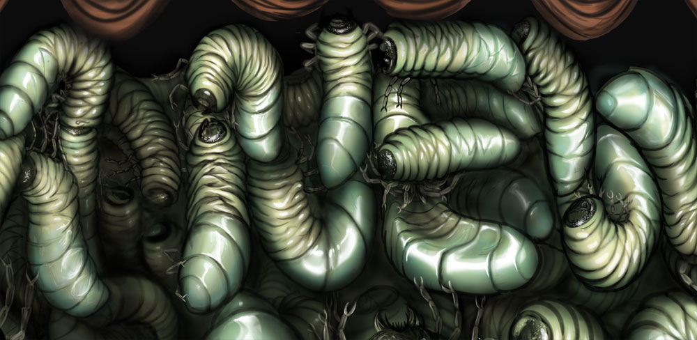Album cover digital painting for MacAdams. They wanted the lettering to look alive and suggested my worm treatment. Really enjoyed this piece… more once I make the back cover of the album. Time for a Flaming Patty with shredder Steve Ettling from LA. Yeeehaw!