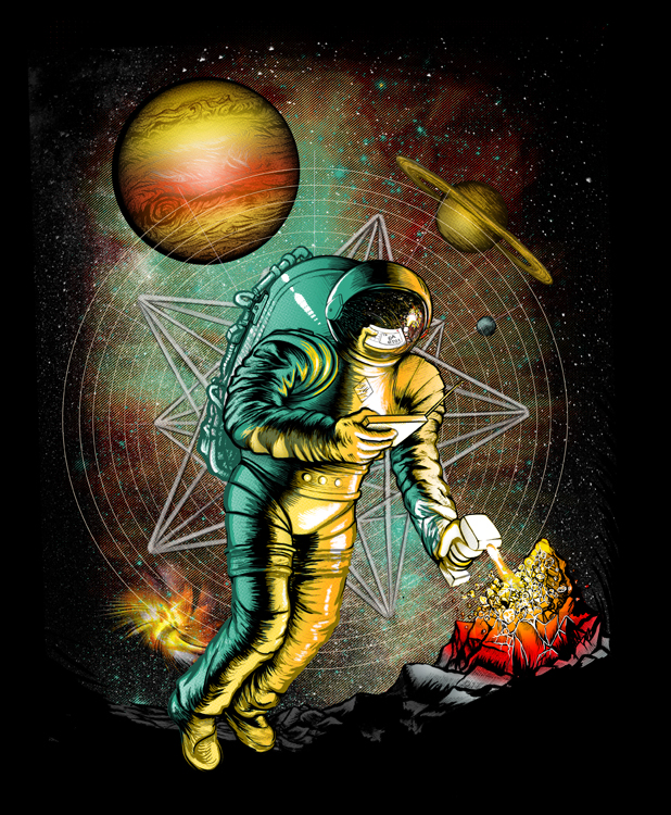 I think I have finished 1 of 4 designs for a new line of shirts that have hidden messages showing a future world when monetary collapse has made silver highly sought after. I’m really into this brand’s ideas and I love space, so this was a great one to start with.