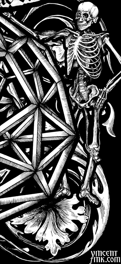 Here’s something reminiscent of some olde tyme styles from around the end of the middle ages and into the Renaissance period. I’d like to know more about some the artists that made the etchings that inspired the filagree background foliage and composition. They aren’t as well known as guys like Andreas Versalius, Pietro Da Cortona or Leonardo Da Vinci who inspired my anatomy drawings here.