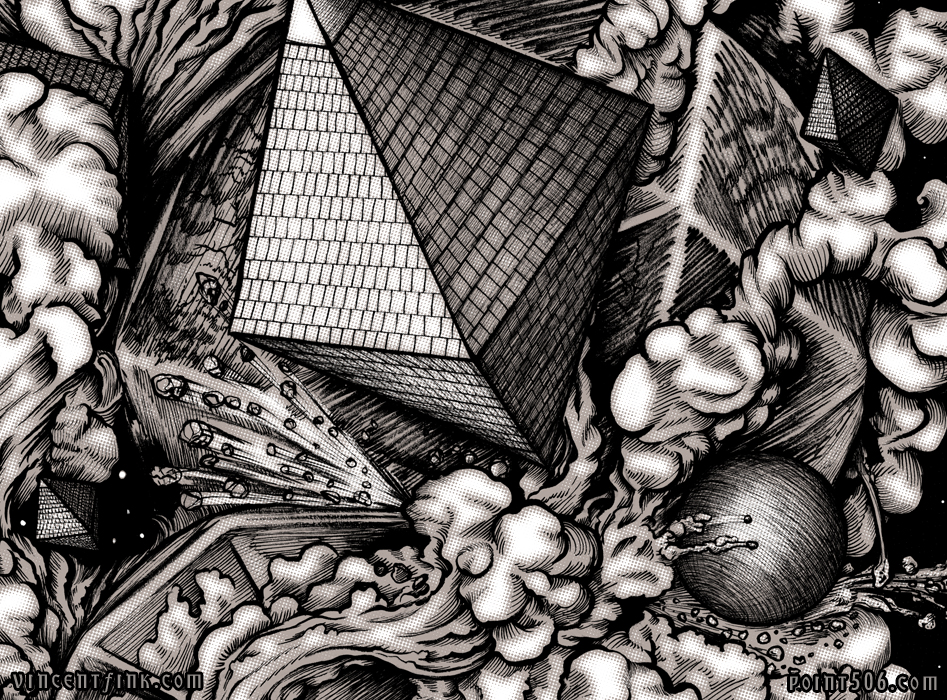 The Pyramids take off as a gas giant collides with their home planet of mostly liquid water. They eject from the surface revealing their full Octahedral shape and take flight at light-speed as they race across the cosmos to find a new home.