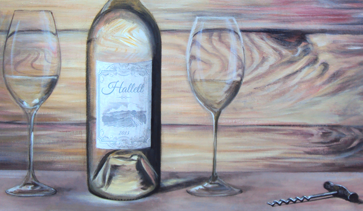Did this elegant wine bottle and glasses painting for friends who just got married. I customized the label to say their last name and the date of marriage on the bottle. Also added a corkscrew to complete the composition and practiced getting glass texture, reflections and refractions of light along with some stylized reddish wood in the background. All in all, for a wine bottle painting, I’m pretty happy with the end result.