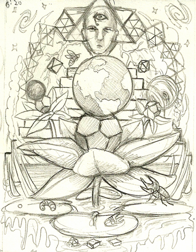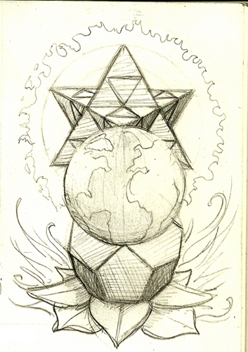 So I just felt I had to show what’s going on in the process of one of the most awesome t-shirt designs I’ve ever done. I’m too tired to give all the details but here’s some preliminary and then a chosen more thought out drawing with client’s changes. I’m sure this is going to be a great sacred geometry t-shirt design and depicts exactly what this out-door art/earth-energy-healing/chill-spot/musical-instrument type thing for Burning Man is all about.