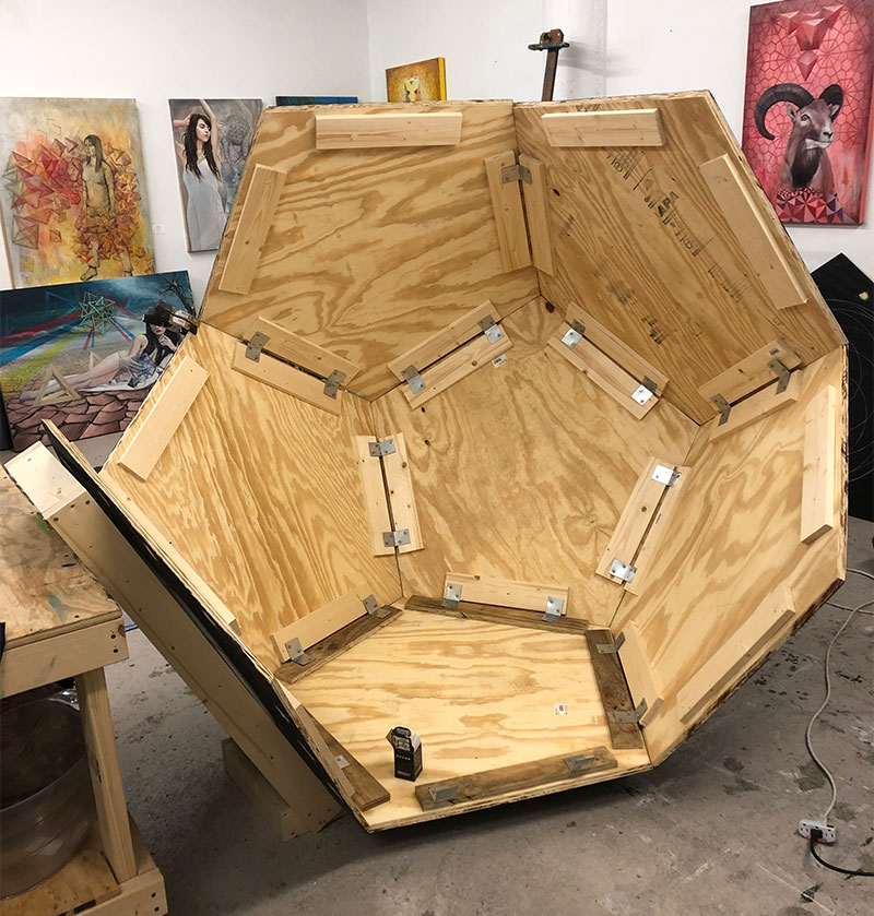 My latest art installation is a gargantuan dodecahedron that explores metaphysical and caporal reality.
