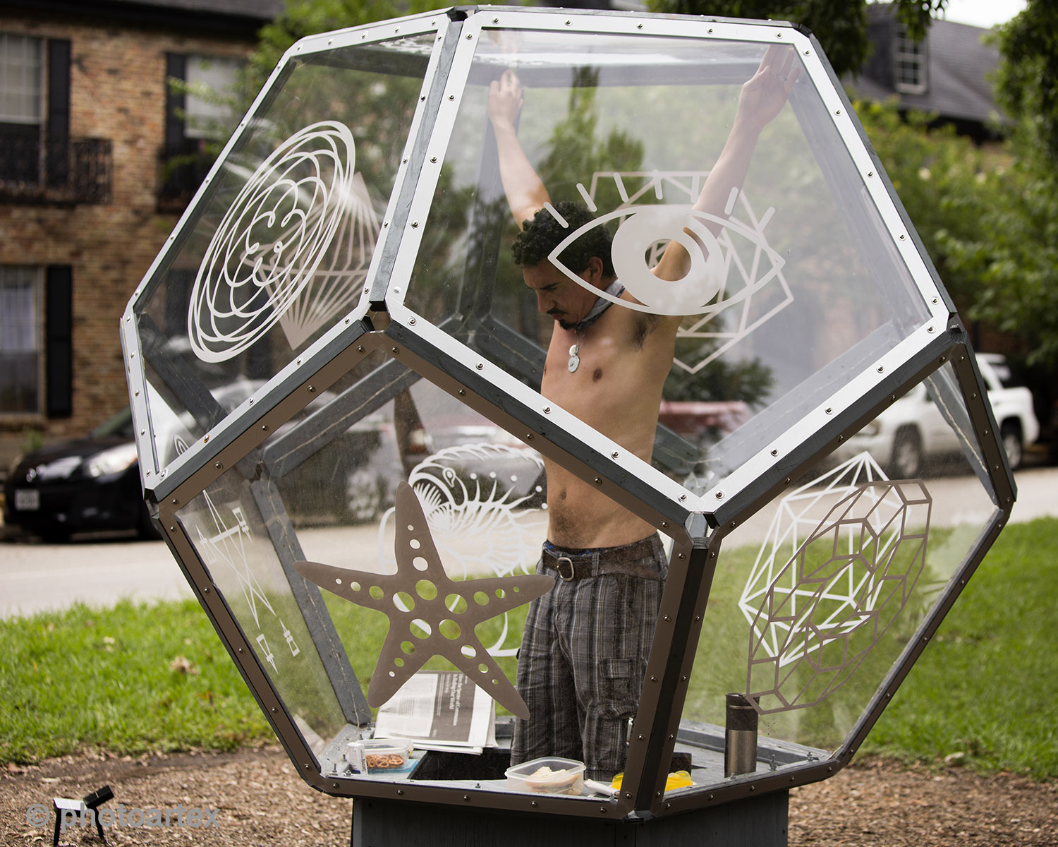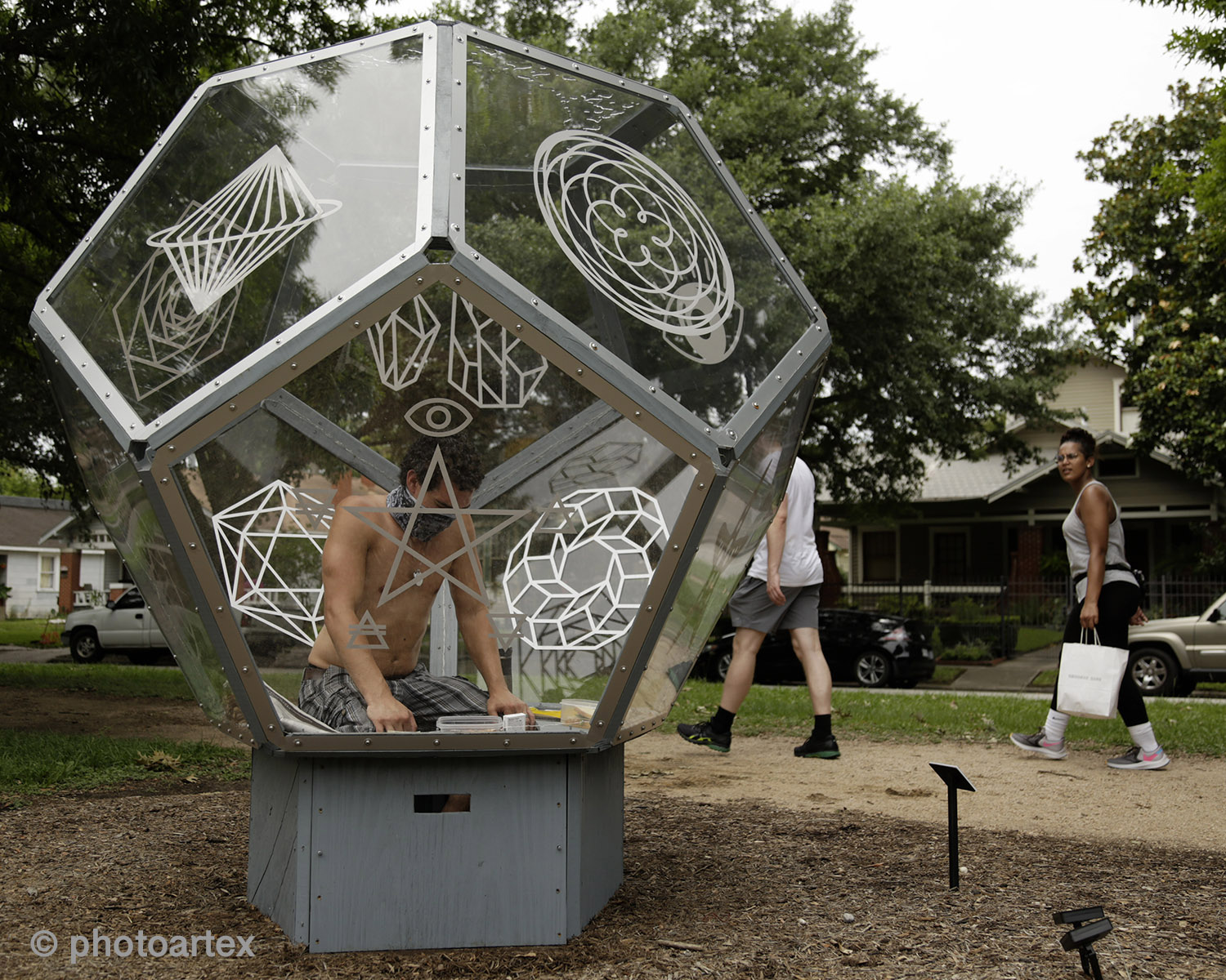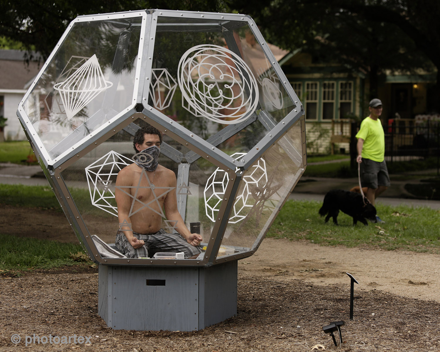 Vincent Fink, a Houstonian native and full-time artist is self-quarantining inside his Dodecahedron installation on Heights Blvd. This public performance art statement brings awareness to the effects of the Covid-19 pandemic on the art scene and the resulting struggles with mental health caused by Social Distancing. Fink invites the public to responsibly join him for a series of live performances at the 600 block of Heights Blvd.