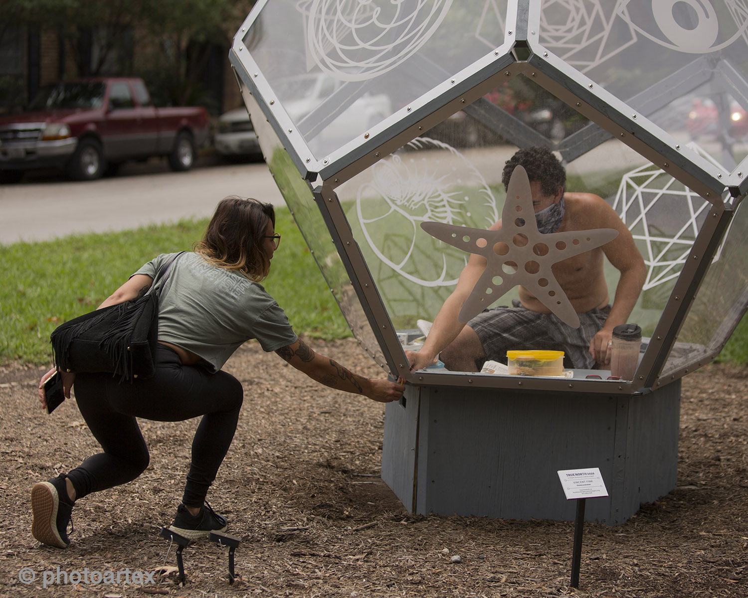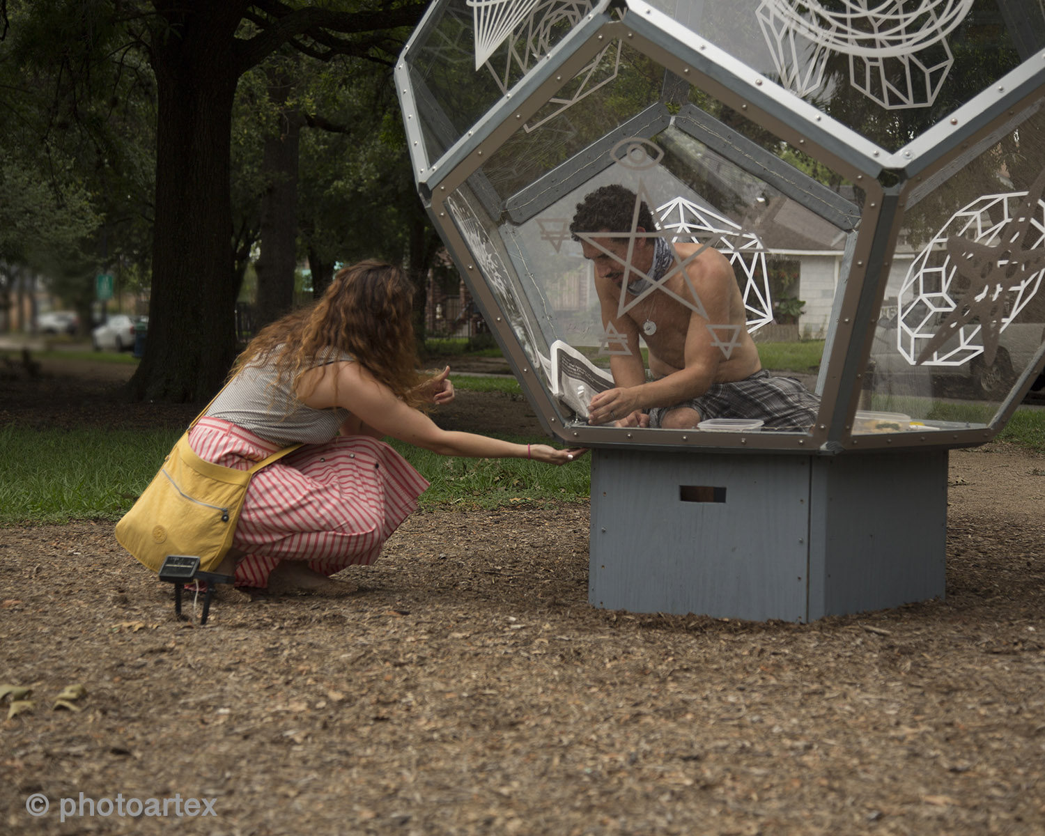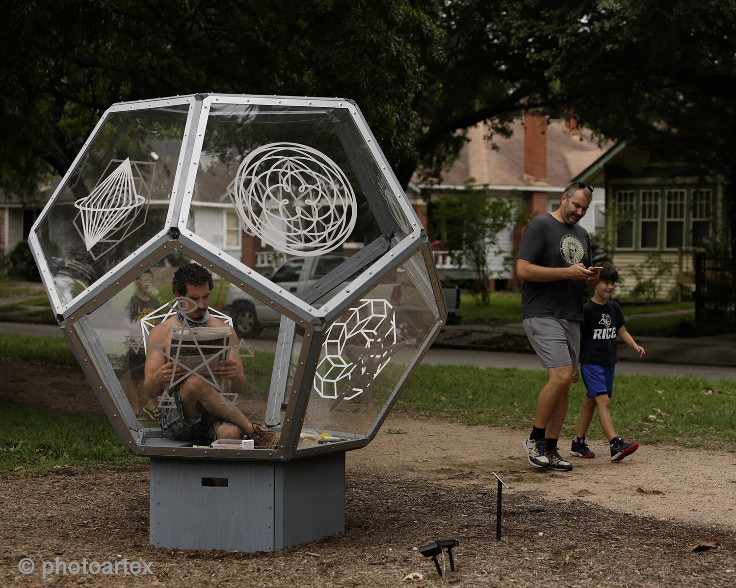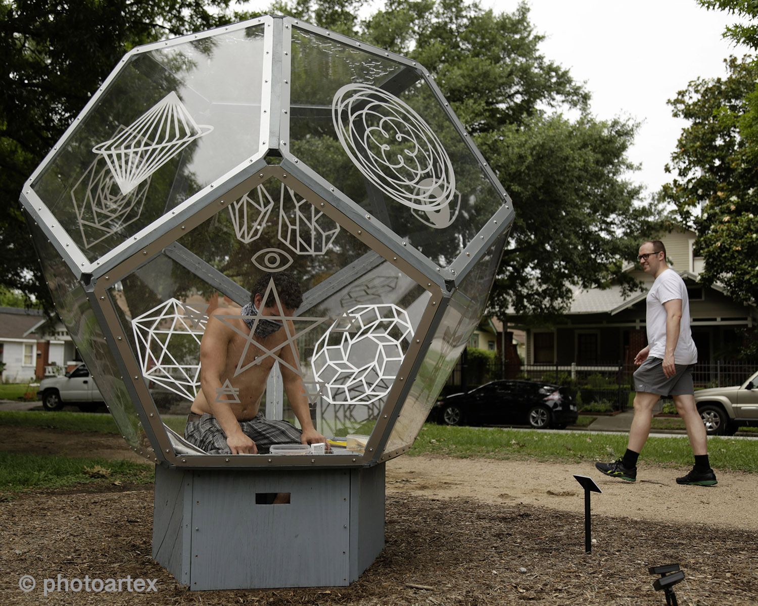 Vincent Fink, a Houstonian native and full-time artist is self-quarantining inside his Dodecahedron installation on Heights Blvd. This public performance art statement brings awareness to the effects of the Covid-19 pandemic on the art scene and the resulting struggles with mental health caused by Social Distancing. Fink invites the public to responsibly join him for a series of live performances at the 600 block of Heights Blvd.