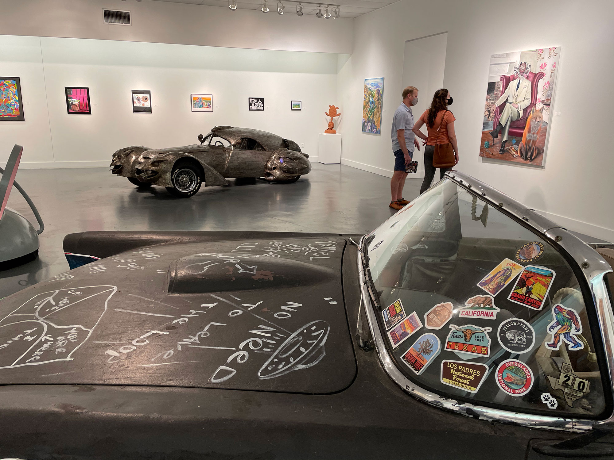 I was especially happy to participate in The Art Car Museum’s “What I Did on My Covid Vacation” because my piece “2020” was painted at the beginning of quarantine and finished towards the half-ass reopening of society and it encompasses a lot of what last year was about. I reckon I should make a whole blog post about this piece soon… anyways…
